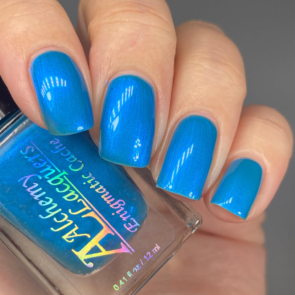 Alchemy Lacquers are all hand blended, in a 5-free base (unless otherwise indicated). This means that the lacquers does not contain formaldehyde, camphor, formaldehyde resins, DBP, or toluene. Each bottle contains two stainless steel agitator beads and a paddle brush.