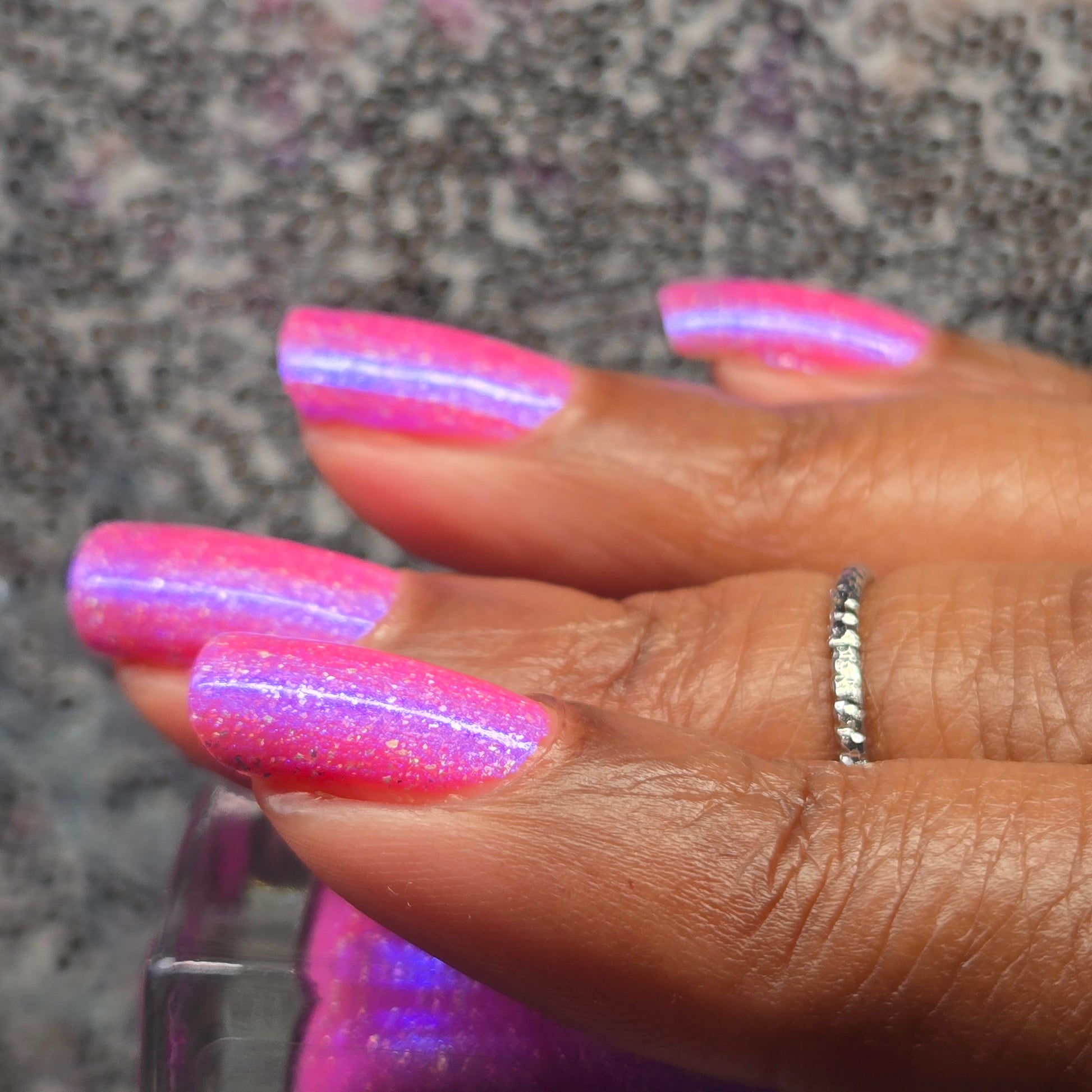 Fashion Pink is a bubblegum pink jelly nail lacquer with blue to purple shifting iridescent shimmer. Fashion Pink is part of the Botanica Collection.