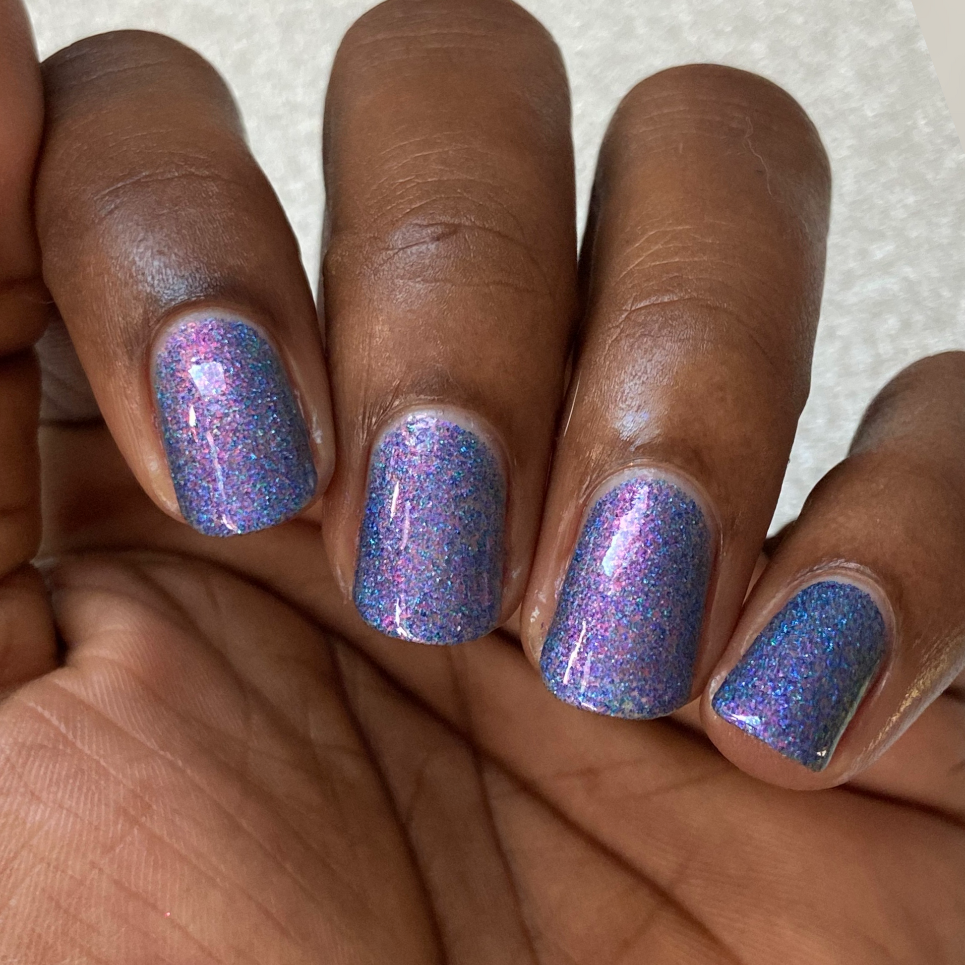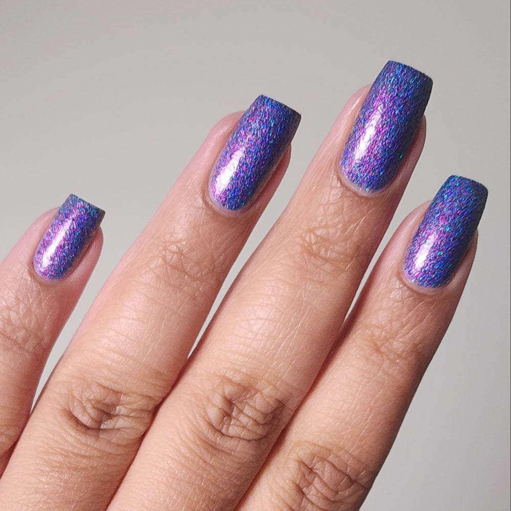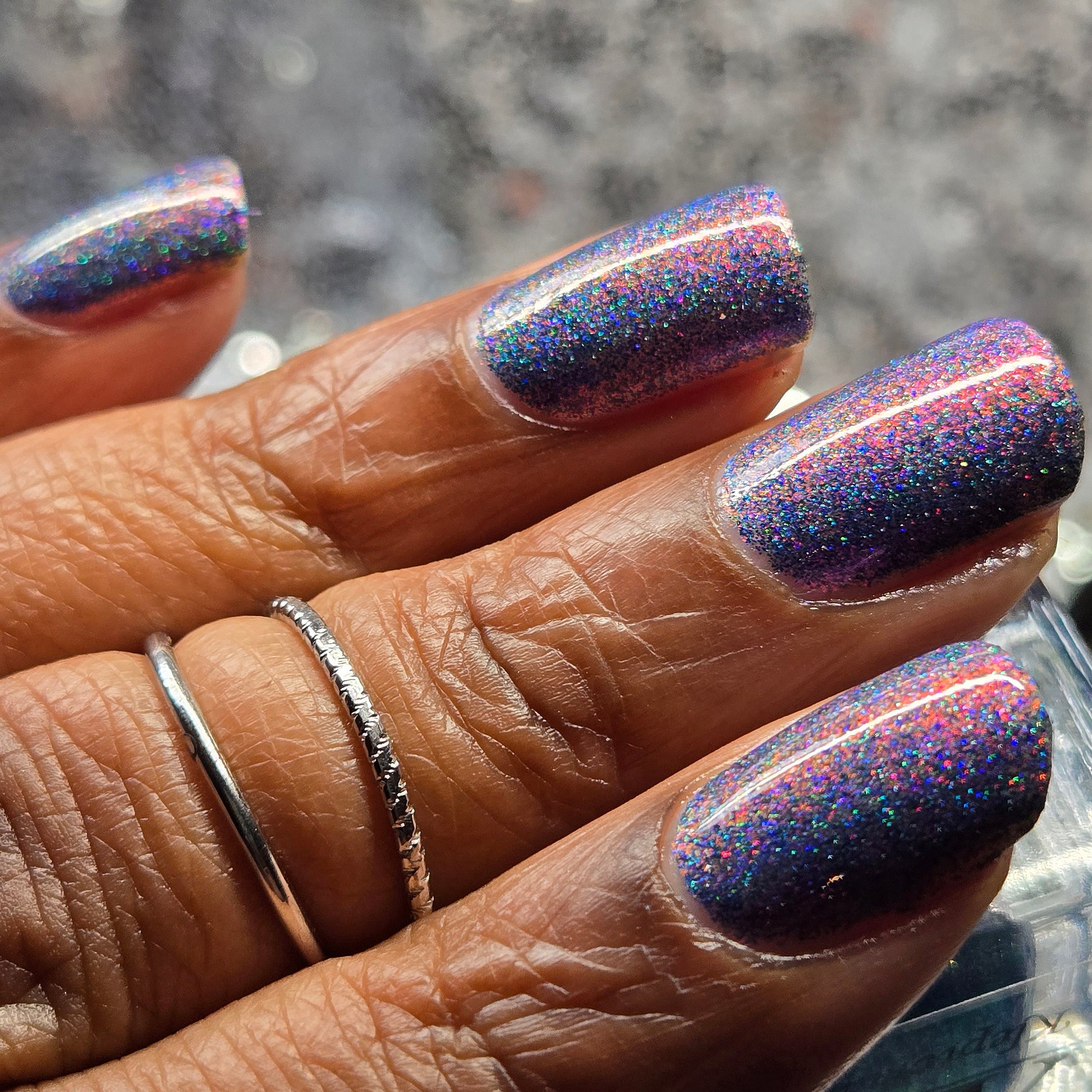 Kleptomaniac Rats is a micro glitter nail lacquer with blue and green micro holographic glitter in a magenta to pink to orange to gold to green (at extreme angles) iridescent shifting shimmer. Kleptomaniac Rats is part of the Stellar Guardians Collection.