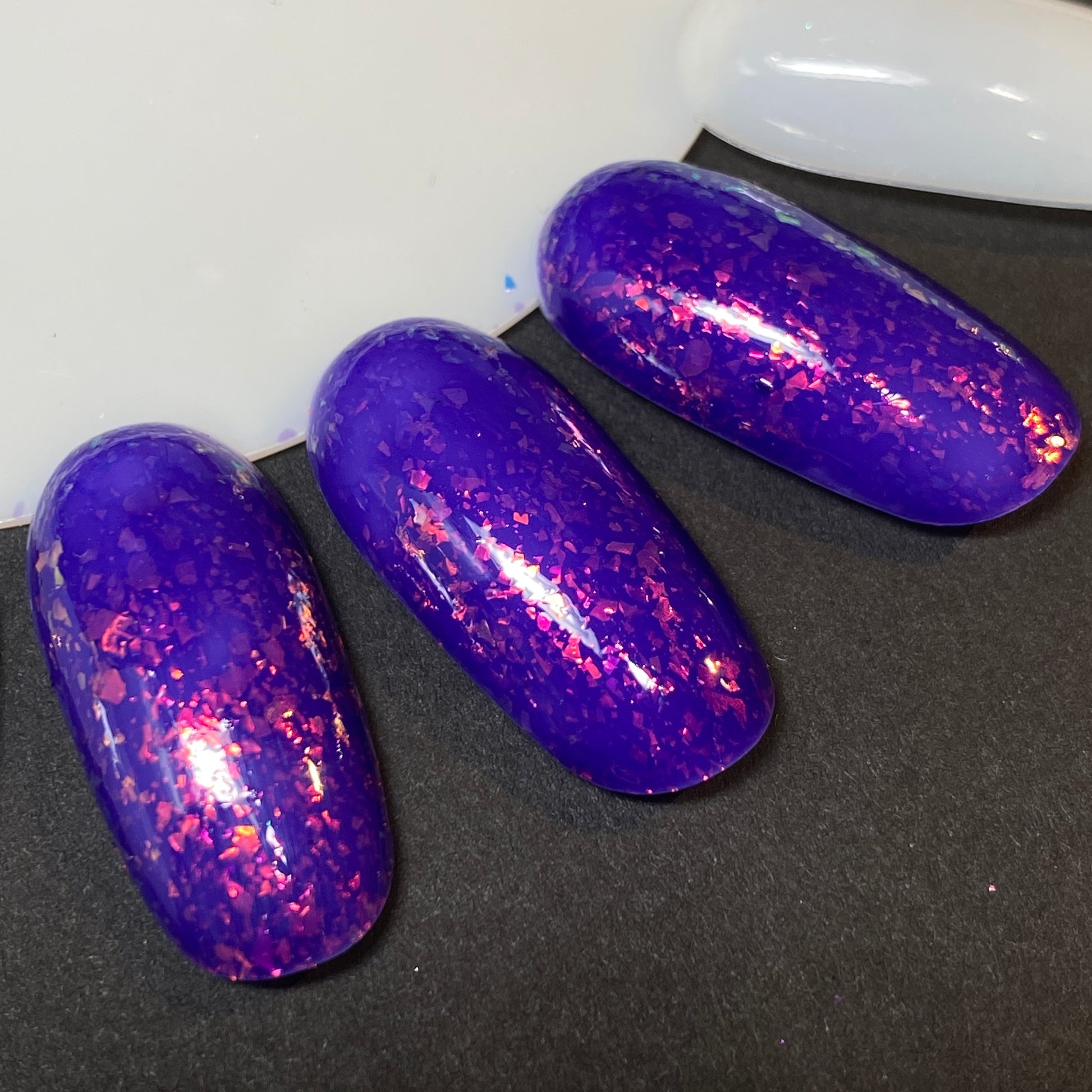 Tonic 57 is a prototype polish. It is a violet jelly nail lacquer with red to orange to gold shifting iridescent shimmer.